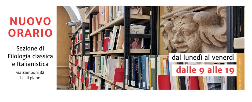 Consulta gli orari e le presenze nelle sezioni della Biblioteca, Via Zamboni 32 (Italianistica e filologia classica) e Via Zamboni 36 (Discipline Umanistiche)